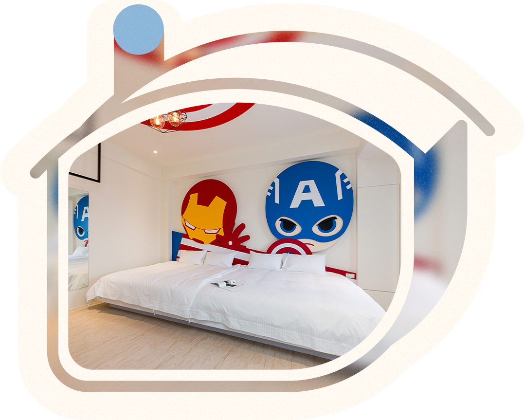 童宅的用心不僅是在娛樂設備,更是在每間客房創造出不一樣的主題,讓大朋友小朋友入住時都充滿著歡喜期待的心情度過美好的假期。